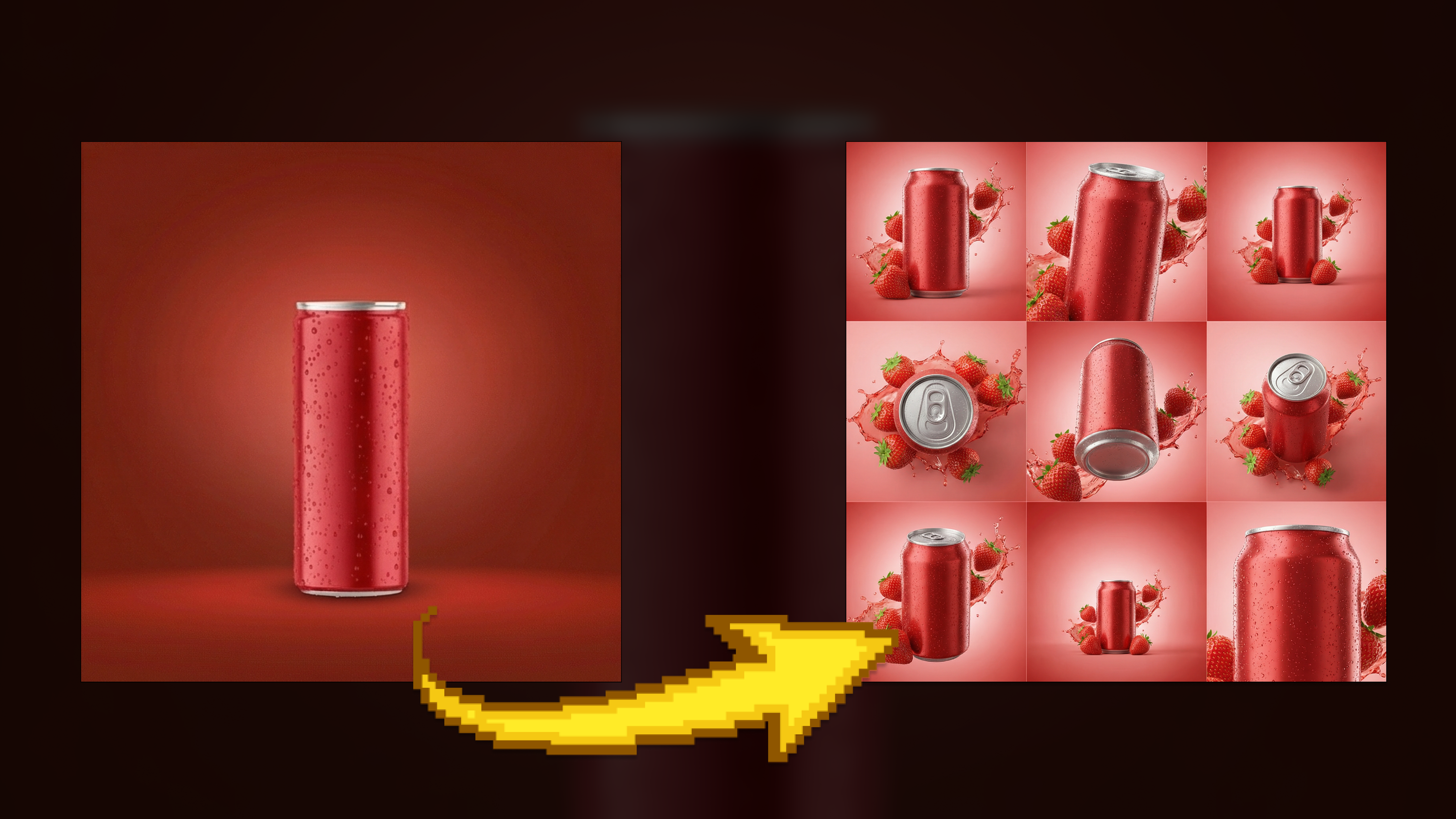 2×2 or 3×3 grids that compare flavors, colors, or SKUs while keeping lighting and branding identical.